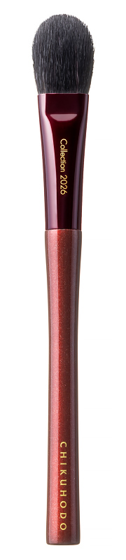 山羊毛の中でも最も柔らかく、希少性の高い細光峰を使用。柔らかい中にコシを併せ持ちます。毛先をずらし仕上げたこだわりの穂先は、面や毛先を使い分けることで、毛穴や凹凸など細かな部分にフィットします。